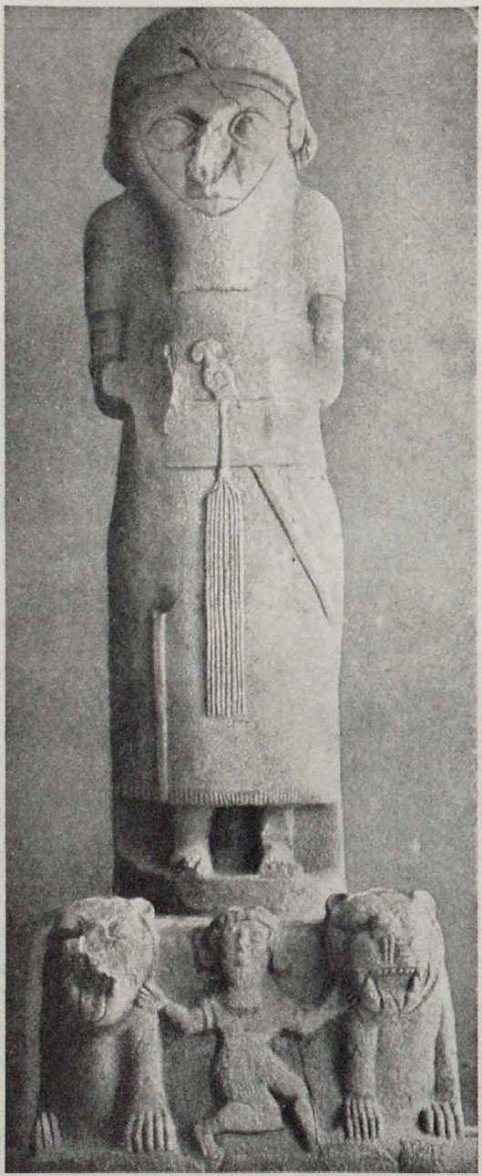 178. Хеттское искусство. Царь на постаментѣ со львами.